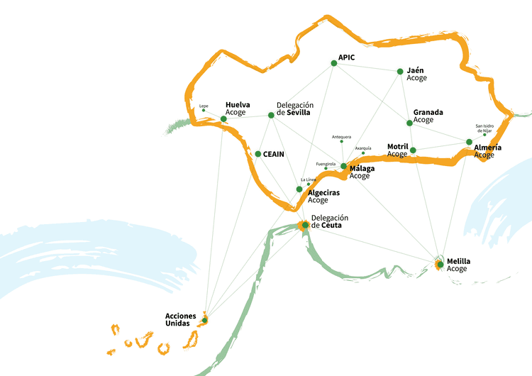 Desde la Federación Sur Acoge agrupamos a 11 asociaciones en Andalucía, Melilla y Canarias y delegaciones en Ceuta y Sevilla.